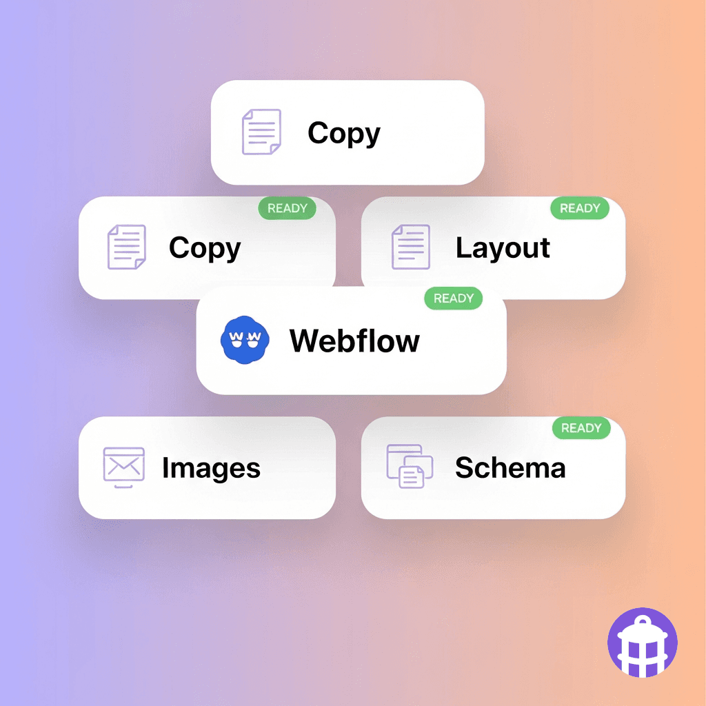 Pages are built and packaged in hours from the campaign brief — copy, layout, and dev-ready markup delivered together.