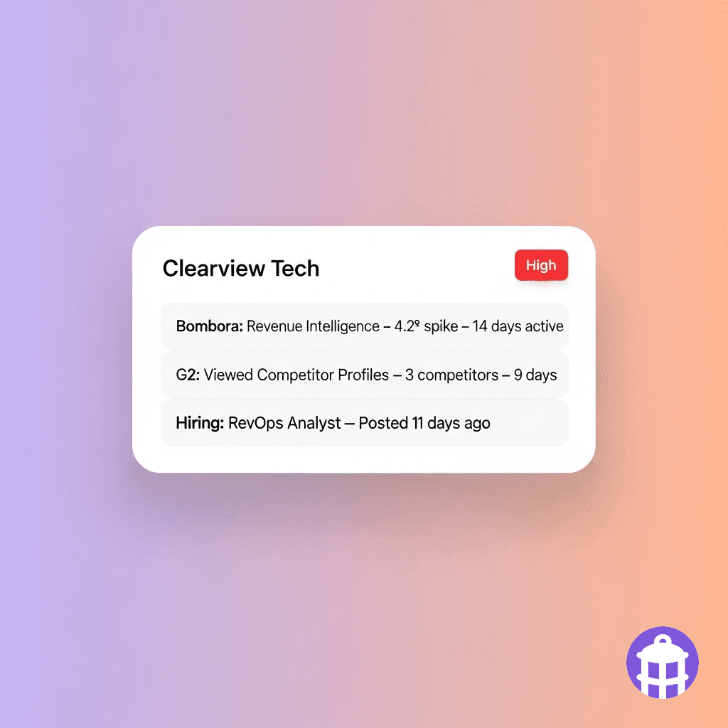 Active intent signals and buying committee map are included with enrichment — rep knows the evaluation context on day one.