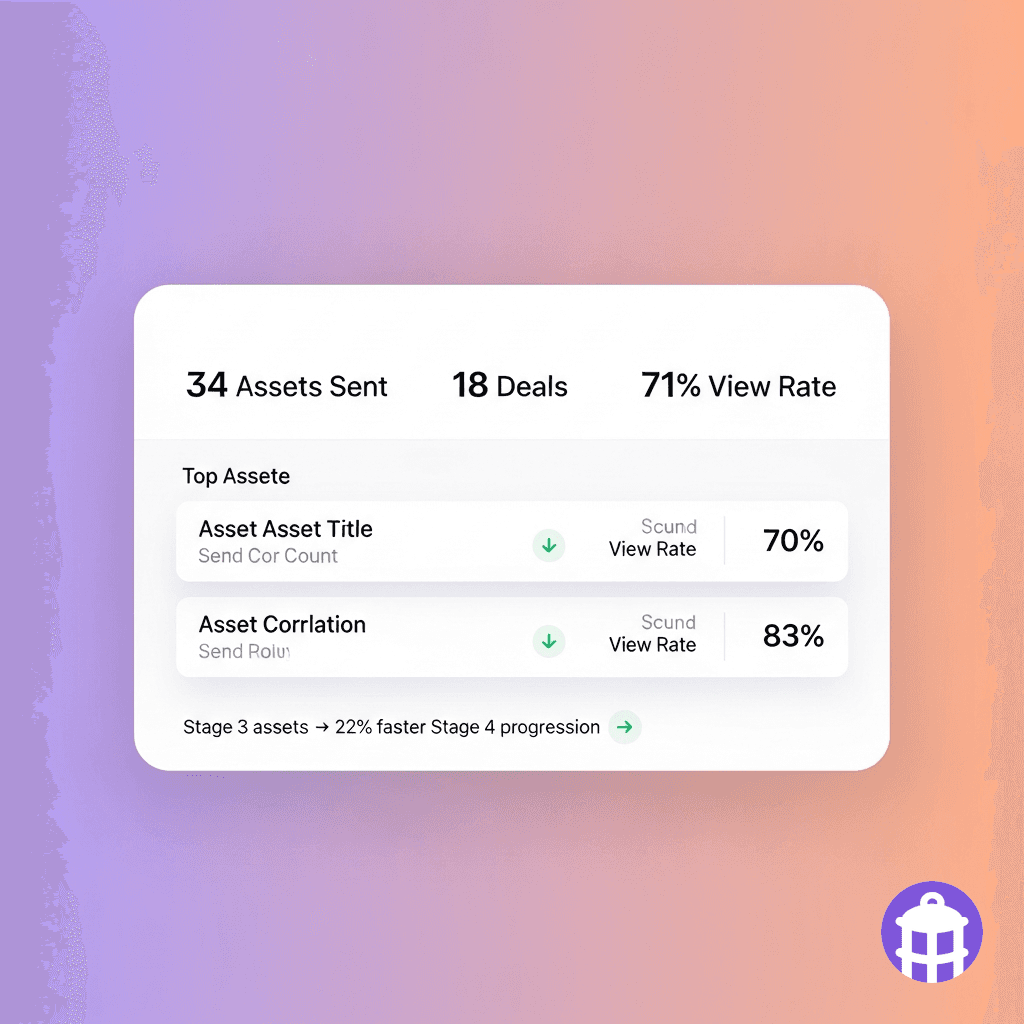 Every asset send and view is logged to the deal activity — which assets correlate with stage progression is measurable and reported.