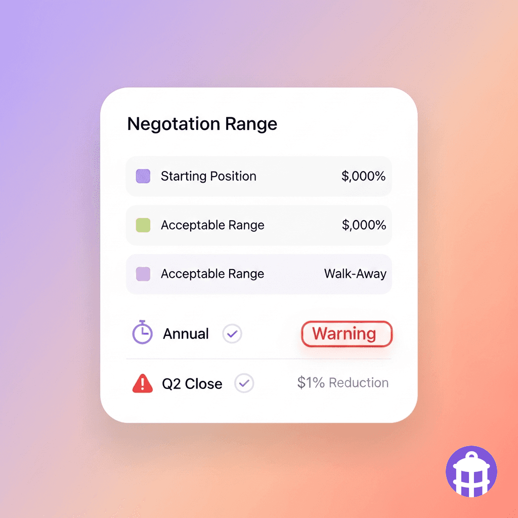 Reps enter commercial negotiations with minimal preparation — they know their starting price but not the prospect's likely position or concession priorities.