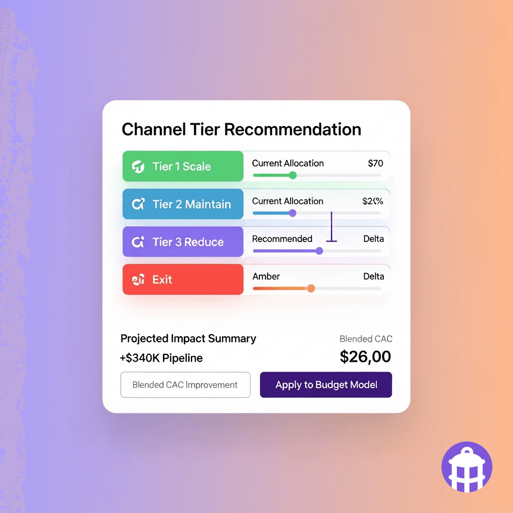 Channel tier recommendations account for diversification risk — allocation guidance that avoids single-channel fragility even when one channel currently leads on ROI