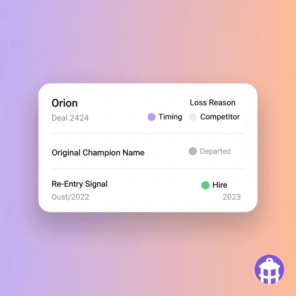 Closed-lost deals sit in CRM as dead records. Reps occasionally re-prospect from memory.