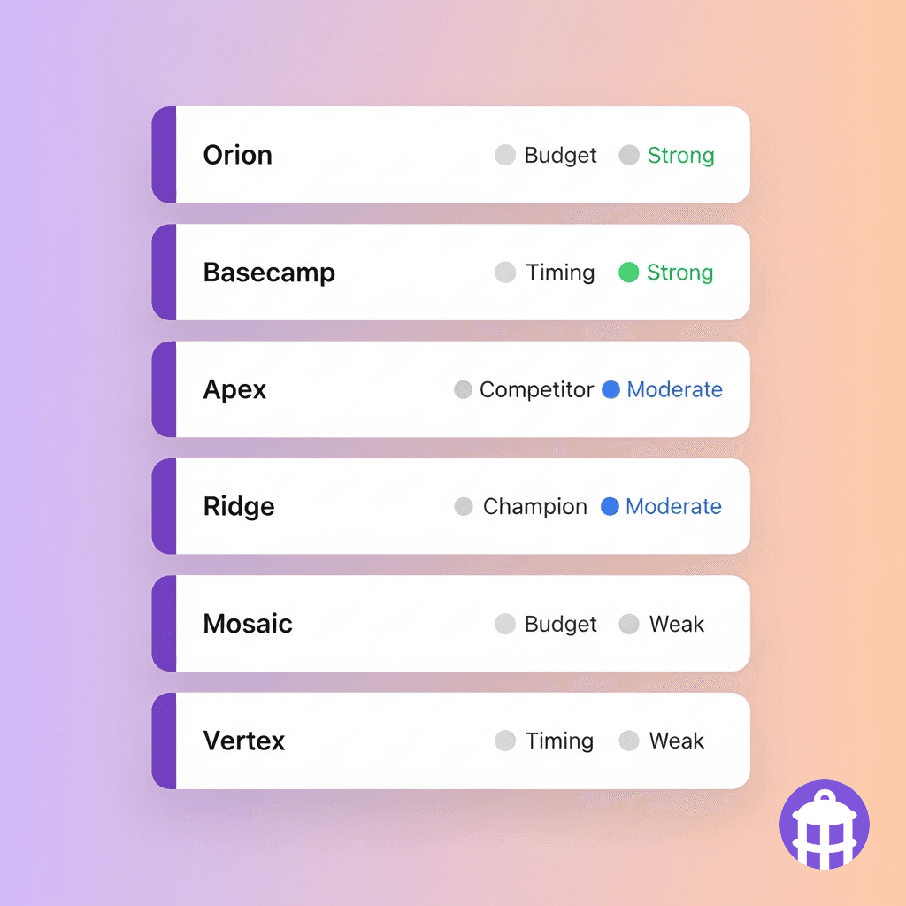 Signal strength and deal history score each account. Highest-potential re-engagements surface first.