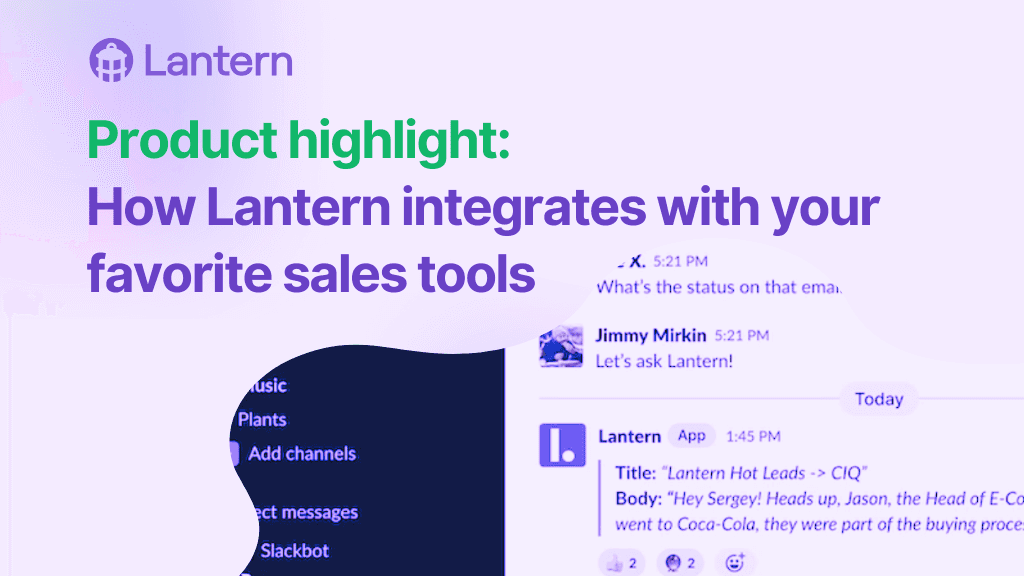 Lantern's robust integrations with popular sales tools like Salesforce, Slack, and others provide sales reps with a powerful advantage in prospecting and pipeline generation. By centralizing critical information and automating data flow between platforms, Lantern empowers sales teams to work more efficiently and close deals faster. Experience the difference Lantern can make in your sales process and take your prospecting efforts to new heights.